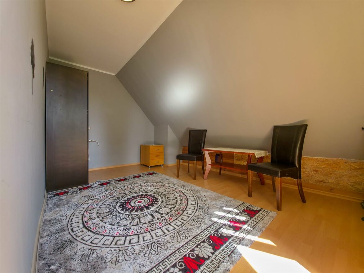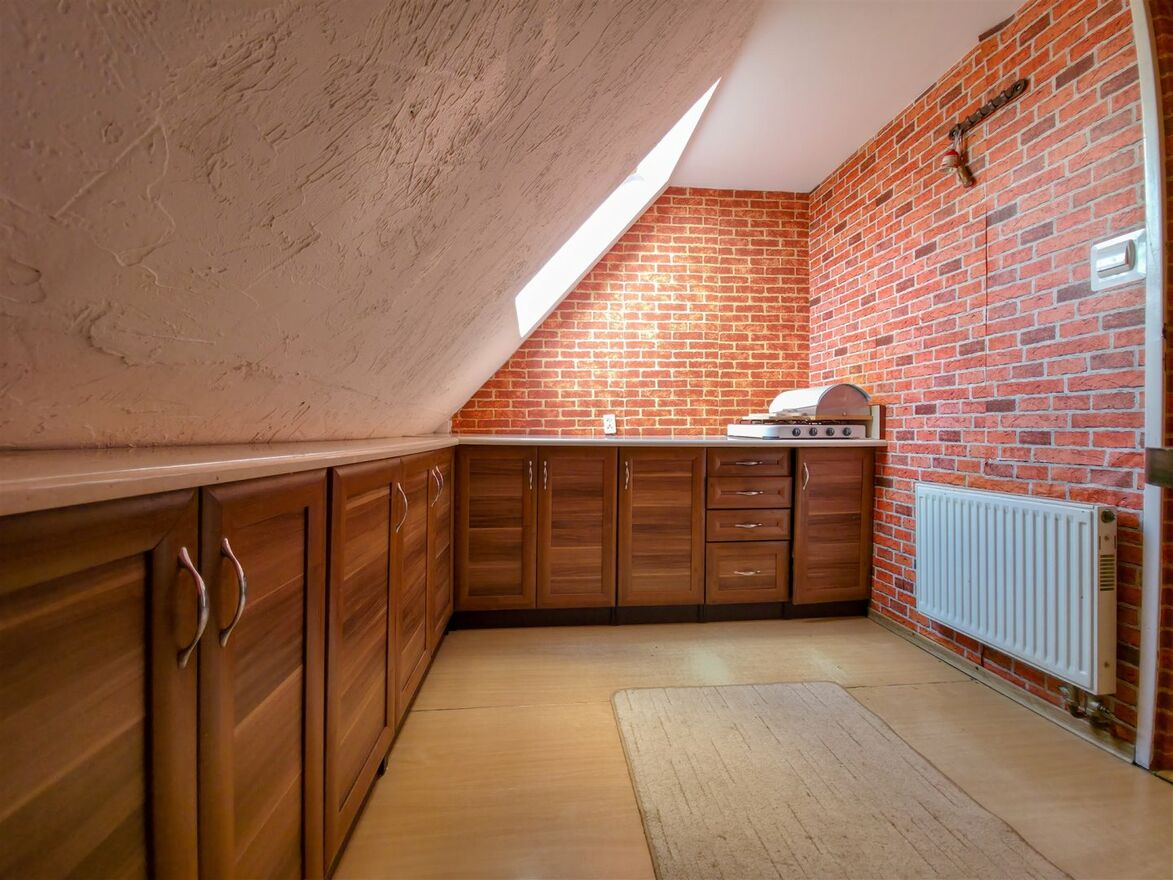 Druuga część : kuchnia + 2 pokoje (w tym jeden dostosowany do zakładu fryzjerskiego), a na poddaszu: pokój, kuchnia i łazienka.